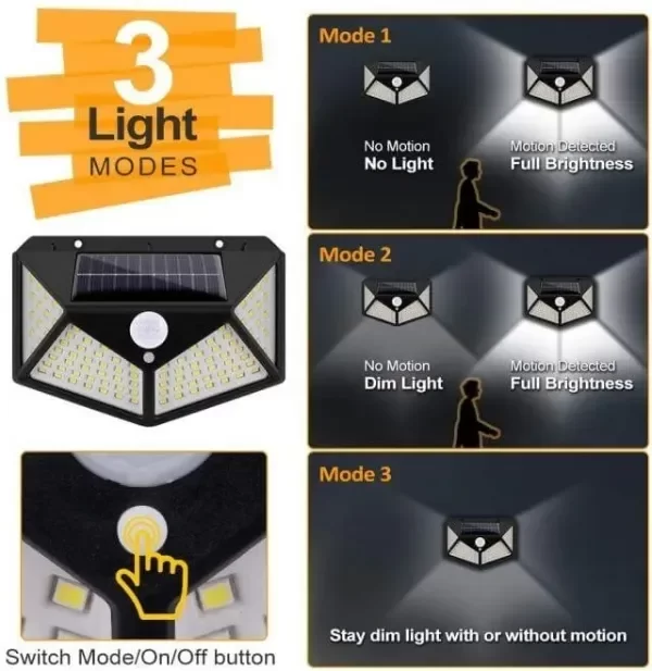 El sensor de movimiento integrado garantiza que la luz se active solo cuando es necesario, lo que mejora la seguridad y contribuye al ahorro energético. Con 100 LEDs, este aplique proporciona una iluminación brillante y efectiva, ideal para jardines, entradas, patios y áreas de acceso.