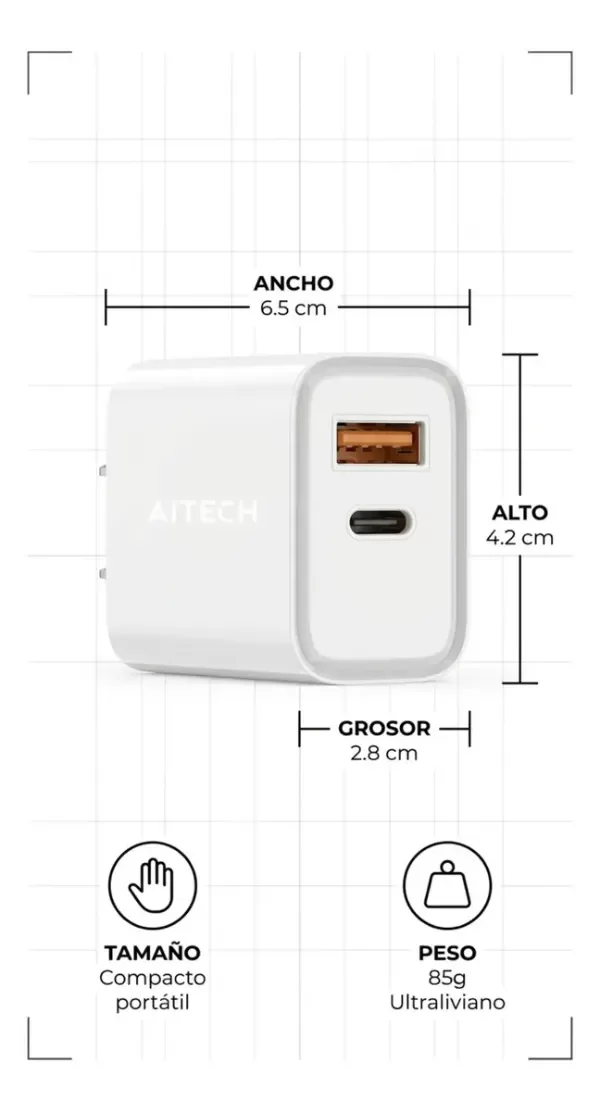 Marca Aitech, modelo Fast Charging 45W con cable Tipo C.